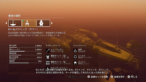 個人的にはこの完成度のもと,Bウイング・スターファイターやタイ・アドバンストx1などにも乗りたかった気がしていて,今後のDLCなどで追加されたりしないかと,少しだけ期待していたりする。