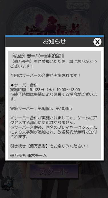 「億万長者」,サーバー合併に伴うイベントが開催中