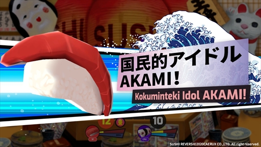 本作はマグロや海老,玉子,タコといったさまざまな寿司ネタを操作して,盤面に配置された皿をひっくり返し合うリアルタイムリバーシ。基本的なルールは通常のリバーシ(オセロ)と変わらないが,ターン制ではなく,リアルタイムでお互いのアクションが展開される。