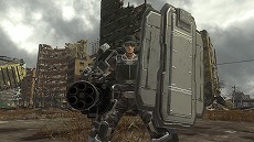 個人用のガトリング砲。パワードスケルトンによってはじめて携帯可能となった重火器である。初弾発射までに時間を要する欠点があるが、その後の連射速度と破壊力は凄まじい。攻撃を行うとバレルが回転を始め、一定の速度に達すると弾丸が発射される。強い反動があり、射撃中は砲口が跳ね上がっていくため手動で狙いを調整する必要がある。