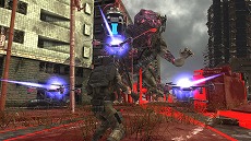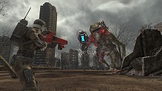 最初に言っておく、EDF隊員諸君は安心してくれ。彼はかなり強い。かつて最前線から攻撃機や砲兵と連携をとり、歩兵でありながら空軍や砲兵に攻撃を指示したエアレイダー。独特の戦闘スタイルを持つ特殊な兵科は、文明崩壊後の世界でも侵略者に立ち向かう新たな力を得た。自律制御マルチコプターを駆使した戦闘スタイルは、本作のひとつの目玉である。退化した世界で進化を遂げたエアレイダーの新しい戦い方とは? その一部を紹介する。