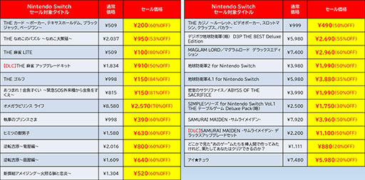 セール対象タイトルの詳細は,下記のリリース文を確認してほしい。