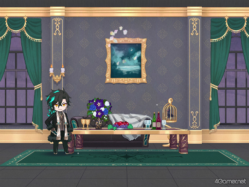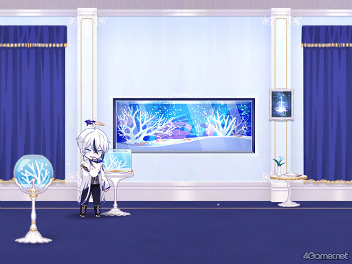 ヴァニスの部屋には,SSRカードにも登場する大きな水槽を飾れる。また家具のなかには,堕天使が描いた絵も