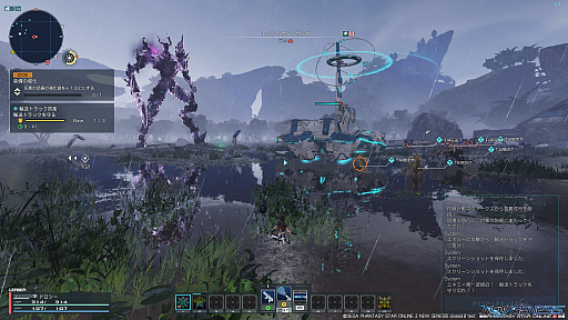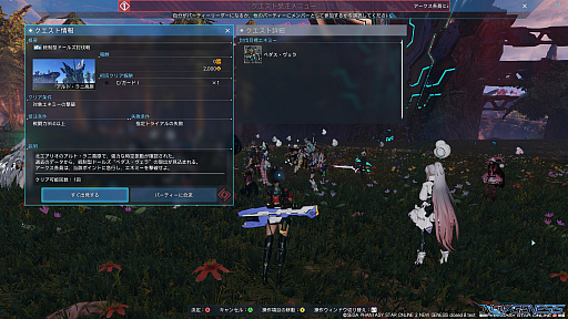 なお,緊急クエストは「PSO2」と同じように,決められた時間に発生するようだ。受注は,指定されたセクションにて行う形で,今回のテストでは,北エアリオのアルト・ラニ高原を舞台にした「統制型ドール討伐戦」が数回プレイできた。