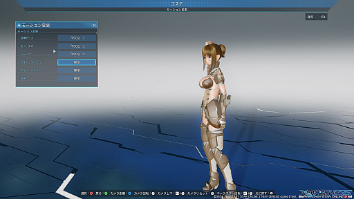 ![]() 走りや歩き,ダッシュ,フォトングライド,泳ぎなどのモーションも変更できる。今回のテストでは種類が少なかったが,ロビーアクションのように,スクラッチなどで登場する予感がする |