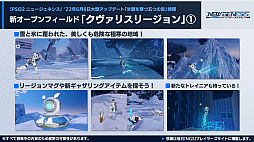 新リージョンとして,極寒の地である“クヴァリス”が追加される同アップデートでは,特殊兵装「フローティングボード」を活用して戦う,新トライアル“寒冷地エネミー討伐”や“ドールズ輸送物資奪取”などが発生する。
