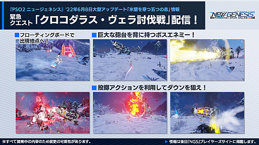 また,クラスレベルの上限が60まで解放されるほか,全クラスへのクラススキルを追加や,レアリティ★6の武器の実装も行われる。緊急クエストには,巨大な砲台を背に持つボスエネミーと戦う「クロコダラス・ヴェラ討伐戦」が登場する。