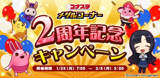 おかげさまで2周年!PCやスマートフォンでメダルゲームが楽しめる「コナステ メダルコーナー」で、「コナステ メダルコーナー 2周年記念キャンペーン」を開催中です。