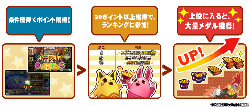 イベント期間中は、対象の6機種にて特定の条件をクリアし、ポイントを一定数獲得する度に報酬のメダルをゲットできます!