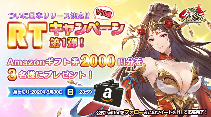 「三国志名将伝」,リツイートキャンペーンの第1弾が開始
