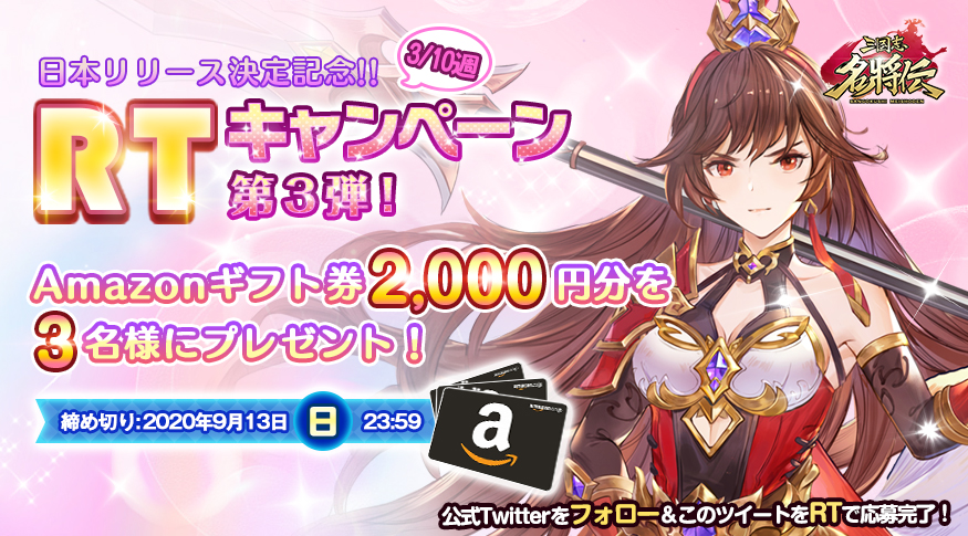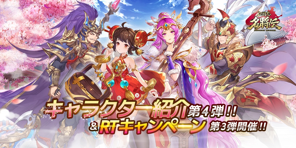 「三国志名将伝」キャラクター情報第4弾を公開。RTキャンペーン第3弾も実施