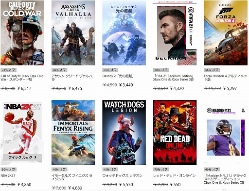 「コール オブ デューティ ブラックオプス コールドウォー」(Xbox Series X / Xbox One)や「アサシン クリード ヴァルハラ」(Xbox Series X / Xbox One)といった新作タイトルも含む500タイトル以上がセールの対象となっており,最大で90%OFFの価格で販売される。