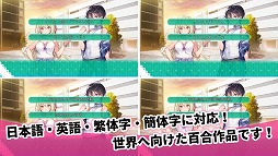 また本作は日本語・英語・繁体字・簡体字に対応しており、タイトル画面から各言語に切り替えて遊ぶことができます。おまけ要素にはヒロインを演じた声優インタビューも収録されており、世界でヒットした百合アドベンチャーをスマートフォンでも余すところなくお楽しみいただけます。