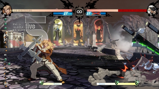 ダストを除く攻撃ボタン3つ同時推しで発動テンションゲージを50%消費することで,直前の行動をキャンセルし,再行動可能になるシステムが「ロマンキャンセル」だ。「GUILTY GEAR」シリーズではおなじみのシステムであるが,本作では状況により4種類のロマンキャンセルが存在し,さらに一部ロマンキャンセルは上下左右4方向に2回レバーを入れつつ(