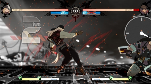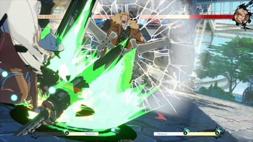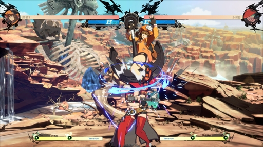全キャラの中でも屈指のリーチを誇るアクセル。画面端から逆の端側まで攻撃できる手段をもっているほか,遠く離れた相手へのガード不能攻撃もあるため,遠距離戦だけで勝利することも可能だ。ただし,無敵技を持たず,扱いやすい小技もないため,近距離戦での守りは苦手。得意の遠距離をどれだけキープできるかが勝利への近道となるだろう。