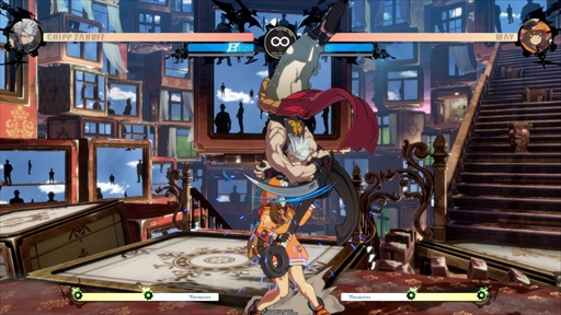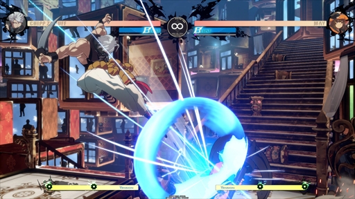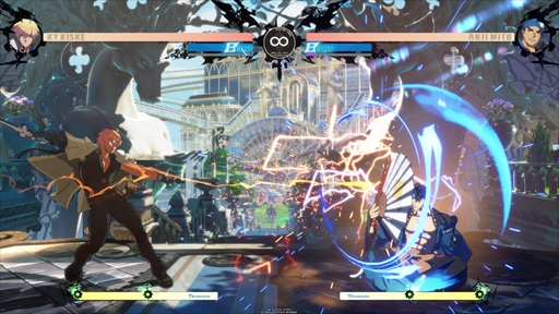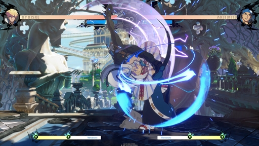 攻撃を繰り出していない状態でロマンキャンセルを入力した場合は青色のエフェクトが発動する。このエフェクトが相手に触れることで,相手をスロー状態にし,大幅に有利な状況を生み出せる。青ロマンキャンセルの発動を起点にしたガード崩しは本作の研究ポイントとなりそうだ。