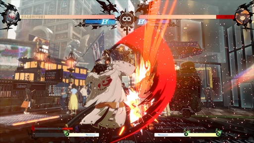 また,名残雪はダッシュと空中ダッシュを所持していないため機動力が低く相手に触れにくい。ただし,必殺技から必殺技でキャンセルできる特性を持っているため,1度触れた際のラッシュ力はかなりのもの。そのぶんブラッドゲージの管理も難しくなっているため,ある程度の修練は必要となりそうだ。