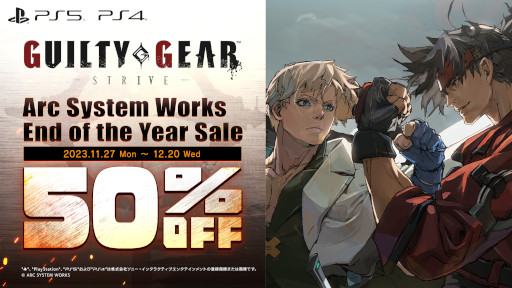 アークシステムワークス株式会社は、本日2023年11月27日(月)より2023年12月20日(水)まで、『GUILTY GEAR -STRIVE-』(通常版)が50%オフでお楽しみいただける「End Of the Year Sale」を開催します。