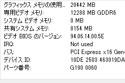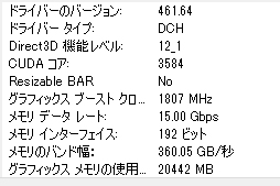 | グラフィックスドライバ | GeForce 461.64 Driver |