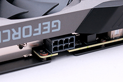 PCIe補助電源コネクタは,一般的な8ピンを1基備える。映像出力インタフェースは,DisplayPort 1.4a×3とHDMI 2.1 Type A×1という構成で,このあたりはRTX 3060 Ti Founders Editionとまったく同じだ。
