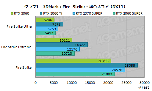 グラフ1は,DirectX 11世代の「Fire Strike」における総合スコアをまとめたものとなる。