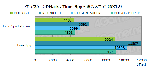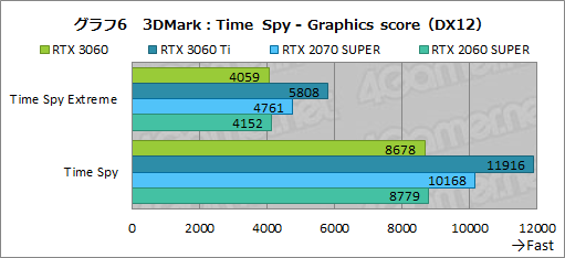 続いて,3DMarkのDirectX 12のテストである「Time Spy」の総合スコアをまとめたものがグラフ5となる。