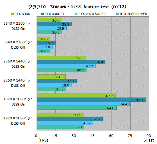 続いて,DLSSの性能を見るNVIDIA DLSS feature testの結果がグラフ10となる。