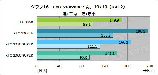 「Call of Duty: Warzone」(※グラフ内ではCoD Warzone)のテスト結果がグラフ14〜16だが,バイオハザード RE:3と似た傾向が見られた。