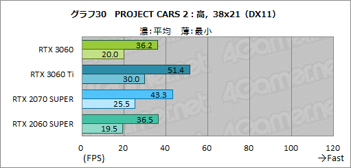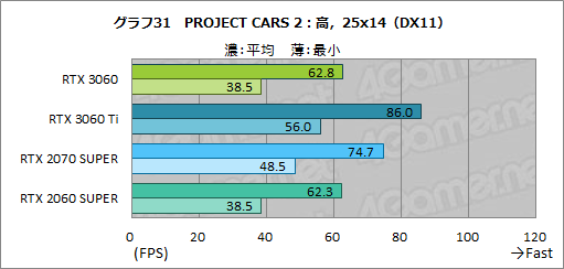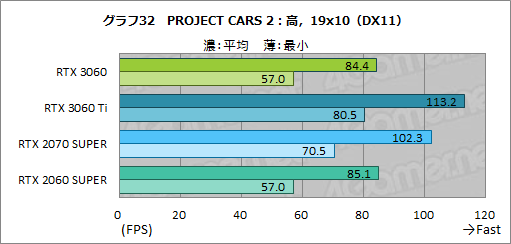 「PROJECT CARS 2」の結果がグラフ30〜32だ。