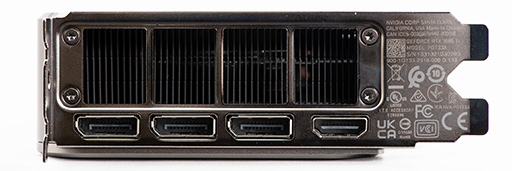 映像出力インタフェースは,DisplayPort 1.4a×3,HDMI 2.1 Type A×1という構成だ。GeForce RTX 20シリーズのFounders EditionにあったUSB Type-Cが省略されている点なども,RTX 3080 Founders Editionとまったく同じだ。