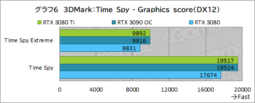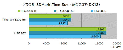 続いては,DirectX 12世代のテストである「Time Spy」の結果を見ていこう。まずは総合スコアをまとめたグラフ5からだ。