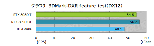 さらに,もうひとつのレイトレーシングテストとなるDirectX Raytracing feature testの結果がグラフ9となる。