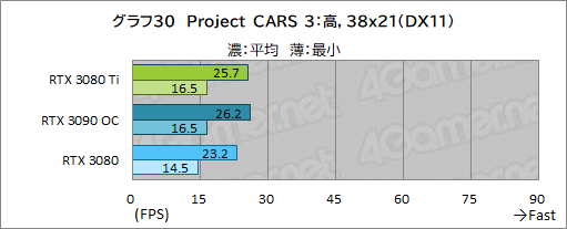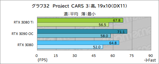 グラフ30〜32には,「Project CARS 3」の結果をまとめている。