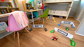 マリオカート ライブ ホームサーキットは,ゲームの動きすべてがリアルのカートと連動するというタイトル。本作に付属している4つのゲートを部屋に置いて,描かれた数字の順番にくぐっていくと,走った軌跡がそのままコースになる。テーブルやソファといった部屋にあるものが,そのまま障害物になるというわけである。