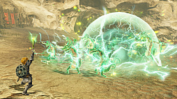 鉄のハンマーを投げるボコブリンに対し、マグネキャッチを構えるリンク |