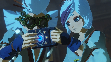 ロベリーとプルアがシーカーストーンをのぞき込む。研究の成果の確認だろうか |