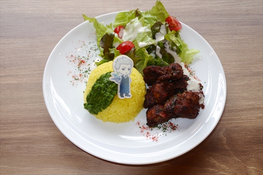 サフランライスとチキン,サラダを楽しめるメニューがこちら。チキンには10種以上のスパイスを使われていて,ガッツリとした濃い味わい。これにサッパリ風味のサフランライスがマッチしており,胃腸が疲れがちな夏でも食欲がモリモリと湧いてきそうだ。