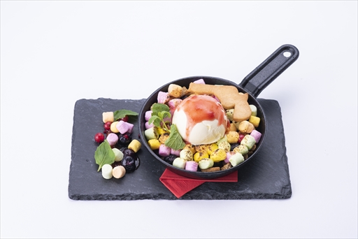 とにかく甘い物がたくさん食べたい! という人にはこの閻魔刀チョコパフェがオススメ。グラス上部には強い甘みのビターチョコの“鍔”が,中にはチョコクリームやクッキー,ストロングレモンシャーベットがたっぷりと詰め込まれており食べがいがある。スイーツ好きも満腹間違いなしのメニューだ。