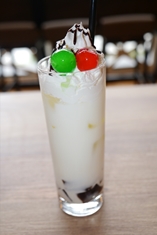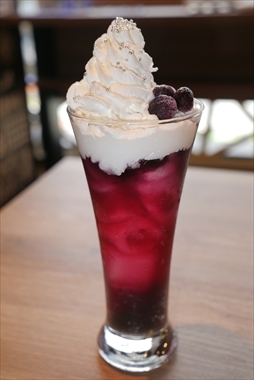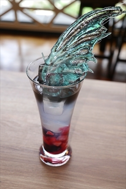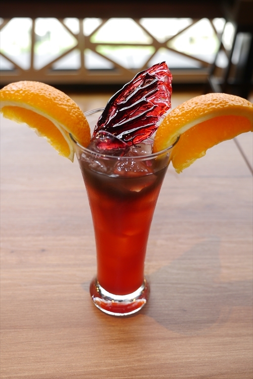 真っ赤なドリンクに真っ赤な飴細工があしらわれているだけでも目を惹くのに,グラスの左右にはカットオレンジも乗っているという,とにかく派手な一品。見た目的に強い甘みを想像するかも知れないが,ベースになっているのはレッドオレンジジュースなので強い酸味を楽しめる。甘みを担うのは飴細工で,パリパリと砕きながら食べてもいいし,レッドオレンジジュースにひたすのもいいだろう。