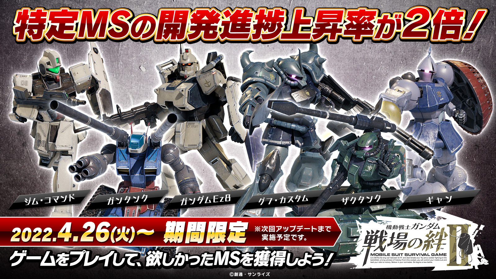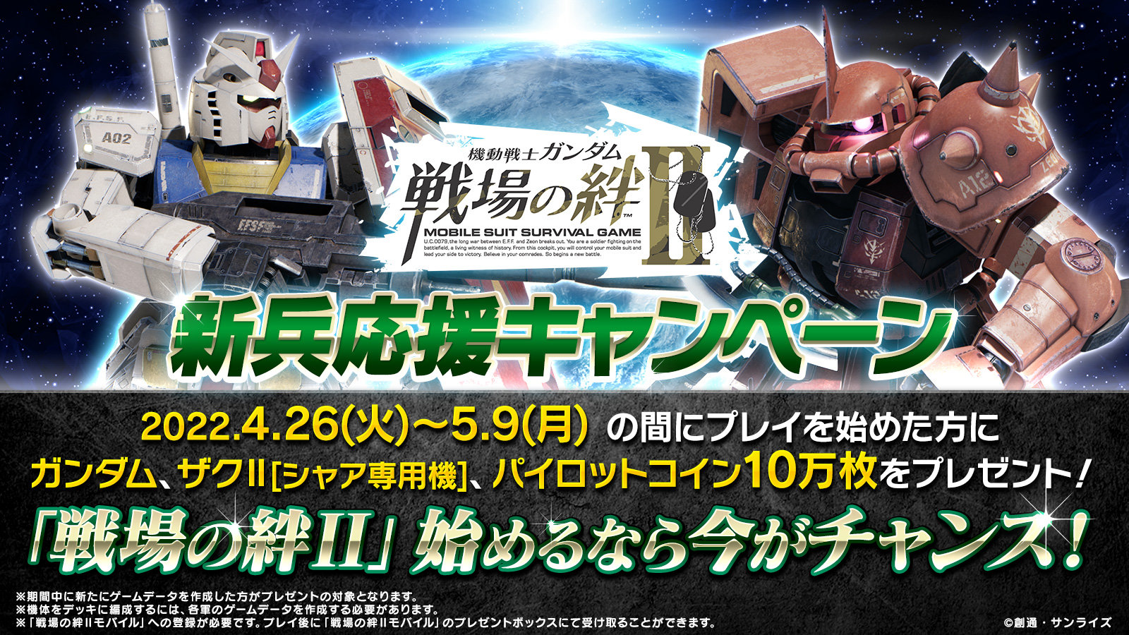 「機動戦士ガンダム 戦場の絆II」4月26日実施予定のアップデート情報が公開に。今後開催される各種キャンペーンも