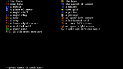 偉大なマニュアルを手に入れたため,そこに書いてあった基礎情報をあらためて紹介しておこう。ゲームのクリア条件は,ダンジョンの地下26階以降に存在するアイテム「Amulet of Yendor」(イェンダーの魔除け,と言うらしい)を持ち帰ることだという。