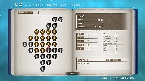 LvUPの際に得られるポイントを消費することで、キャラクターを自由に成長させることが可能
