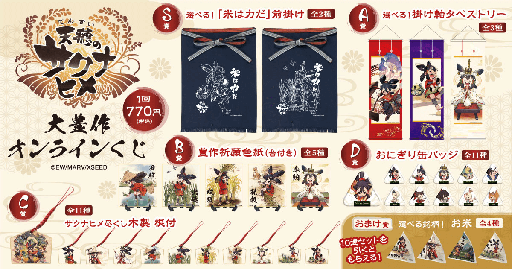 くじでは,和風アクションRPG「天穂のサクナヒメ」(PC / PS4 / Nintendo Switch)のビジュアルを用いたオリジナルグッズが当たる。各賞と景品は以下の通り。