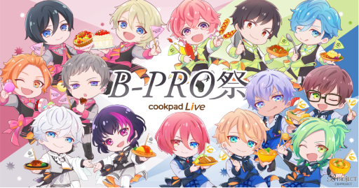 CookpadTV株式会社(代表取締役:今田 敦士、 本社:東京都港区)が展開する人気エンターテイメント作品とのコラボ企画「AniCook」において、 BIGアイドルプロジェクト「B-PROJECT」とのコラボが決定!キャラクター達がクッキングLiveアプリ「cookpadLive」に出演してクッキングLiveを披露する姿をイメージした「B-PRO祭」を4月21日(木)から東京・大阪で同時開催します。