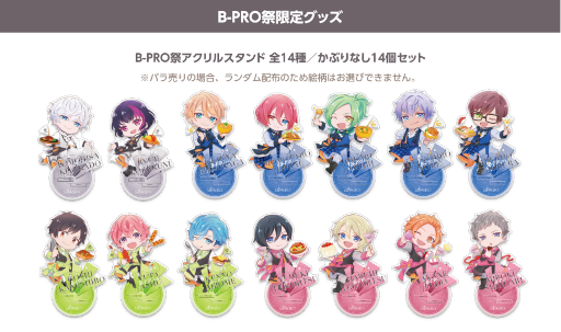 キャラクター達がクッキングLiveアプリ「cookpadLive」に出演し、 派手な料理パフォーマンスで魅了する姿をイメージした描き起こしイラストを使用した限定グッズも登場します!美味しい料理と「B-PRO祭」でしか見られないキャラクター達の魅力をお楽しみください!