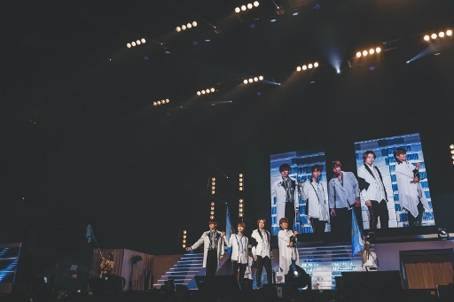 白のジャケットを身にまとったキャストたちが勢揃いし,アニメOP主題歌「熱烈*ラブコール」からライブは開幕した。その姿は,まるで王子様のようだ。始まりにふさわしい楽曲とキャストたちの笑顔に,会場もペンライトを振って大きな盛り上がりを見せた。