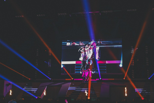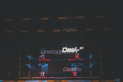 ライブパートでは,畠中 祐さんと伊東健人さんが圧倒的なダンスパフォーマンスで,「Desire」「Update」を披露。そして,まさかのTHRIVEの人気曲「Tick-tack」をカバーし,会場からは一層大きな歓声が沸き起こる! 曲の途中からはTHRIVEのキャストである豊永さん,花江さん,加藤さんが登場して,5人でスペシャルなパフォーマンスを見せてくれた。