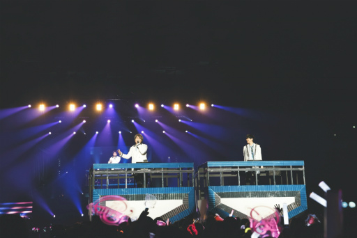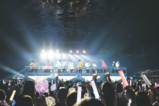 豊永さん,上村さん,大河さんがキレキレのダンスを披露した「Cinderella Boys」から始まり,「Freaking Love」では岸尾さん,森久保さん,増田さん,千葉さんがトロッコに乗って登場! 会場中を巡り,満面の笑みで手を振ったり,バブルガンでシャボン玉を打ったりする姿は,キラキラと輝いていてまさしくアイドルであった。