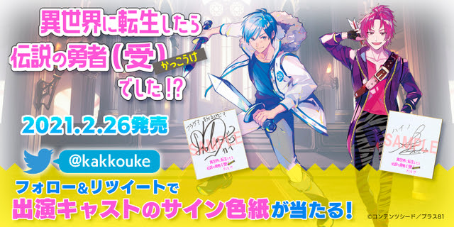 「異世界に転生したら伝説の勇者(受)でした!?」,出演声優のサイン色紙が当たるTwitterキャンペーンを実施