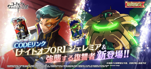 コードギアス Genesic Re;CODE製作委員会 (株式会社サンライズ、株式会社博報堂DYメディアパートナーズ、株式会社JORO)は、好評配信中コードギアス初のスマートフォンゲームとなるシリーズ公式続編「コードギアス Genesic Re;CODE(ギアジェネ)」において『コードギアス Genesic Re;CODE 反逆のルルーシュ編「STAGE26 皇帝と騎士」』が本日より公開、“皇帝ナナリー&V.V.”が新登場するキャラクター召喚など各種アップデート&新機能が追加になったことをお伝えいたします。